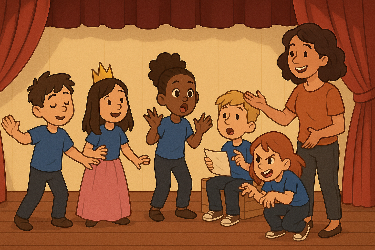 En una clase de teatro se trabajan aspectos como la expresión corporal, técnicas de voz, improvisación, análisis de texto, puesta en escena y sobre todo, desarrollar el imaginario de una manera que solo los niños suelen hacer.